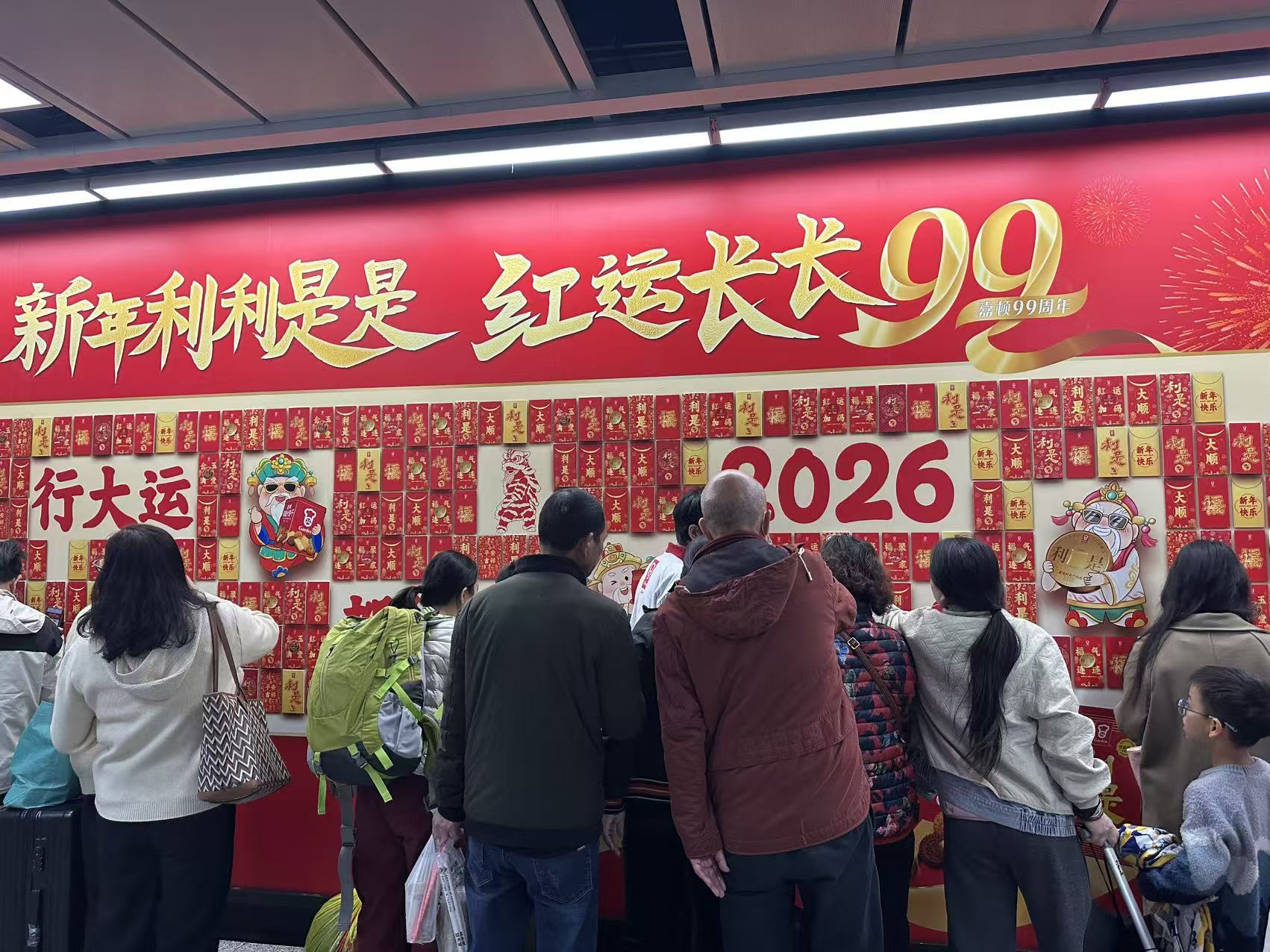 为传递“过年买嘉顿,红运长长99”的主题,嘉顿邀请明星佘诗曼担任代言人,通过户外媒体、高铁广告与社交媒体全域覆盖。事件营销上,品牌在广深两地分别打造精彩的互动,如广州昌岗“红运长长99”主题地铁站,设置99个利是封互动墙,消费者可通过NFC扫码抽取红运签并参与抽奖,同步引流电商平台。