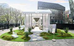 此次快闪空间以"春日跳房子"为灵感核心,一条半透明廊道作为序章,地面加入跳格子模块,让人沉浸式感受轻快、明亮的春日氛围。穿过廊道,便进入此次快闪的核心区域「春日花房」。花房同样采用半透明结构,并结合植物装置进行布置,让整个空间看起来更轻透,也更贴近春天的感觉。空间外围环绕着翠绿的苔藓与粉色花丛,搭配简约的白色长椅与复古小推车,将自然野趣与都市精致感巧妙融合。